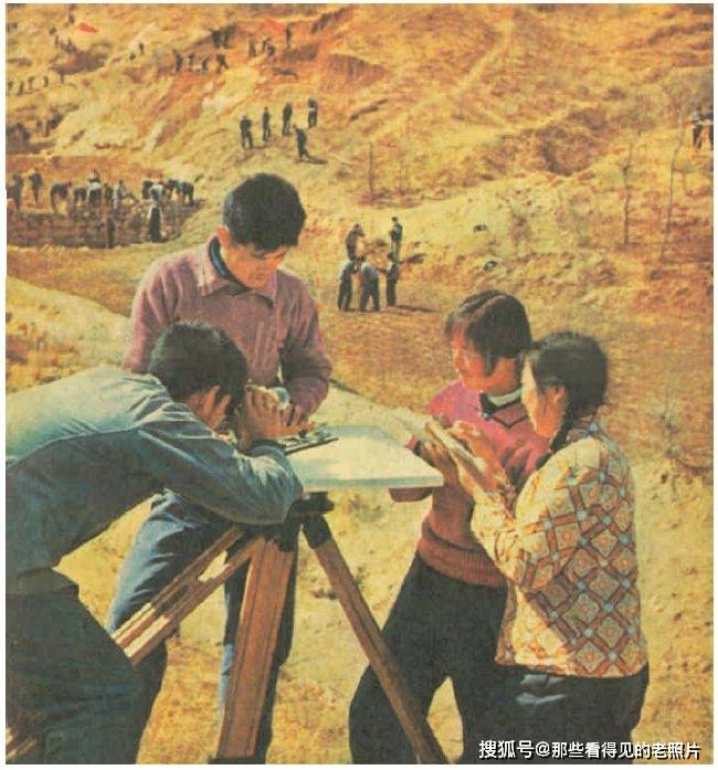 教育革命结硕果——朝阳农学院坚定不移地执行毛主席的革命路线,不断巩固和发展教育革命的伟大成果。这是水利系师生在造田工地进行现场测量教学。新华社记者 摄