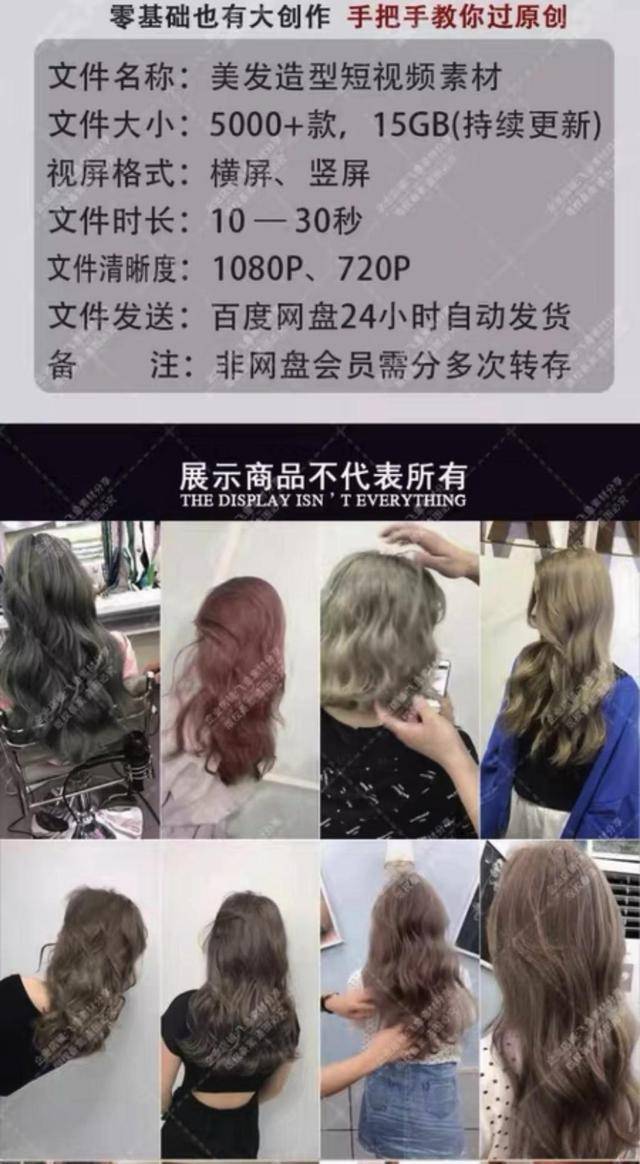 “零基础也能做网红美发店,探店宣传必备。” 记者从二手平台发现,1元可以购买1100张发型造型图片,1.5元可以购买2000个美发烫染短视频,5.63元可以购买5000款无水印视频。