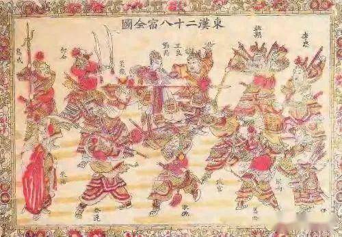 二十八将,指的是汉光武帝麾下助其一统天下、重兴汉室江山的二十八员大将。明帝永平年间,明帝追忆当年随其父皇打下东汉江山的功臣宿将,命绘28位功臣的画像于洛阳南宫的云台,故称“云台二十八将”。后世民间传说,云台二十八将对应上天二十八星宿,是天上的二十八星宿下凡转世。