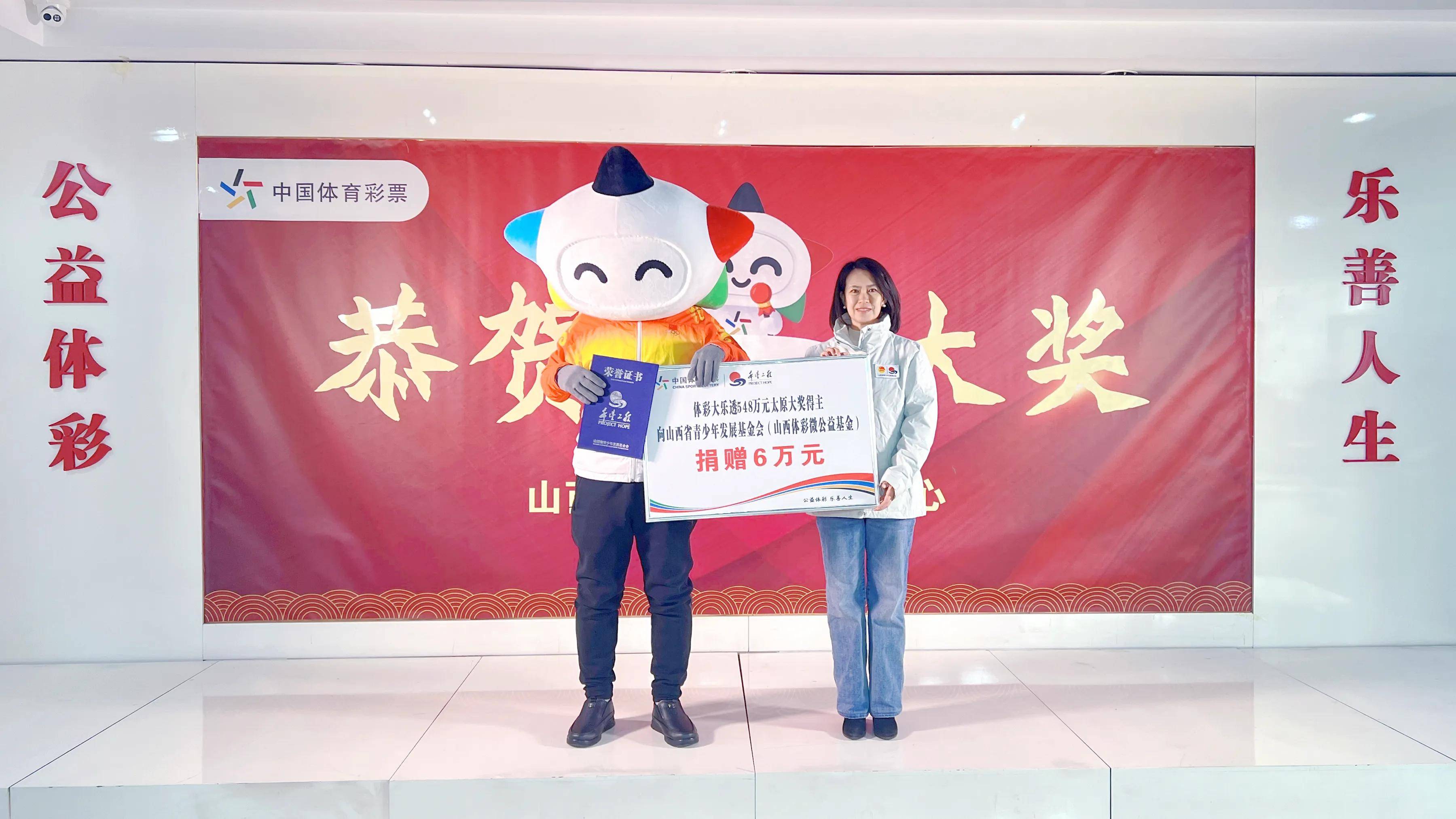 在办理兑奖手续过程中,这位幸运购彩者的一个举动更显温情。他主动向工作人员提出,愿意从中奖奖金中捐赠6万元给山西省青少年发展基金会,用于支持青少年公益事业的发展,帮助更多需要帮助的人。“能中大奖是我的幸运,这份幸运也应该传递下去。我也想尽一份微薄之力,为社会做点实事。”这份突如其来的善意,让幸运与爱心在此刻完美交融,也生动诠释了“体彩公益,乐善人生”的理念。